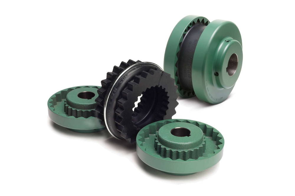 The Sure-Flex coupling is an elastomeric flexible coupling designed for smooth and reliable power transmission with minimal maintenance. It features a flexible sleeve made from EPDM rubber, Neoprene, or Hytrel, which enables a unique four-way flexing action. This design allows the coupling to absorb shock loads, dampen vibration, and accommodate angular, parallel, and axial shaft misalignment. Sure-Flex couplings transmit torque efficiently without the need for lubrication, reducing downtime and operating costs. Commonly used in pumps, compressors, fans, and conveyor systems, they help protect connected equipment, extend service life, and ensure quiet, dependable performance in a wide range of industrial applications.