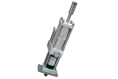 A pneumatic air and liquid increasing cylinder, commonly referred to as an air-over-oil intensifier or hydro-pneumatic boosting cylinder, is a hybrid actuator that combines pneumatic and hydraulic principles. It uses low-pressure compressed air to drive a piston that pressurizes an internal oil chamber, producing a much higher hydraulic output force or pressure. This design delivers smooth, controlled motion with significantly increased force compared to standard pneumatic cylinders. Air-over-oil cylinders are ideal for applications requiring high force, precise control, and short working strokes, such as pressing, riveting, clinching, and forming operations. They offer an efficient solution where full hydraulic systems are impractical or unnecessary.